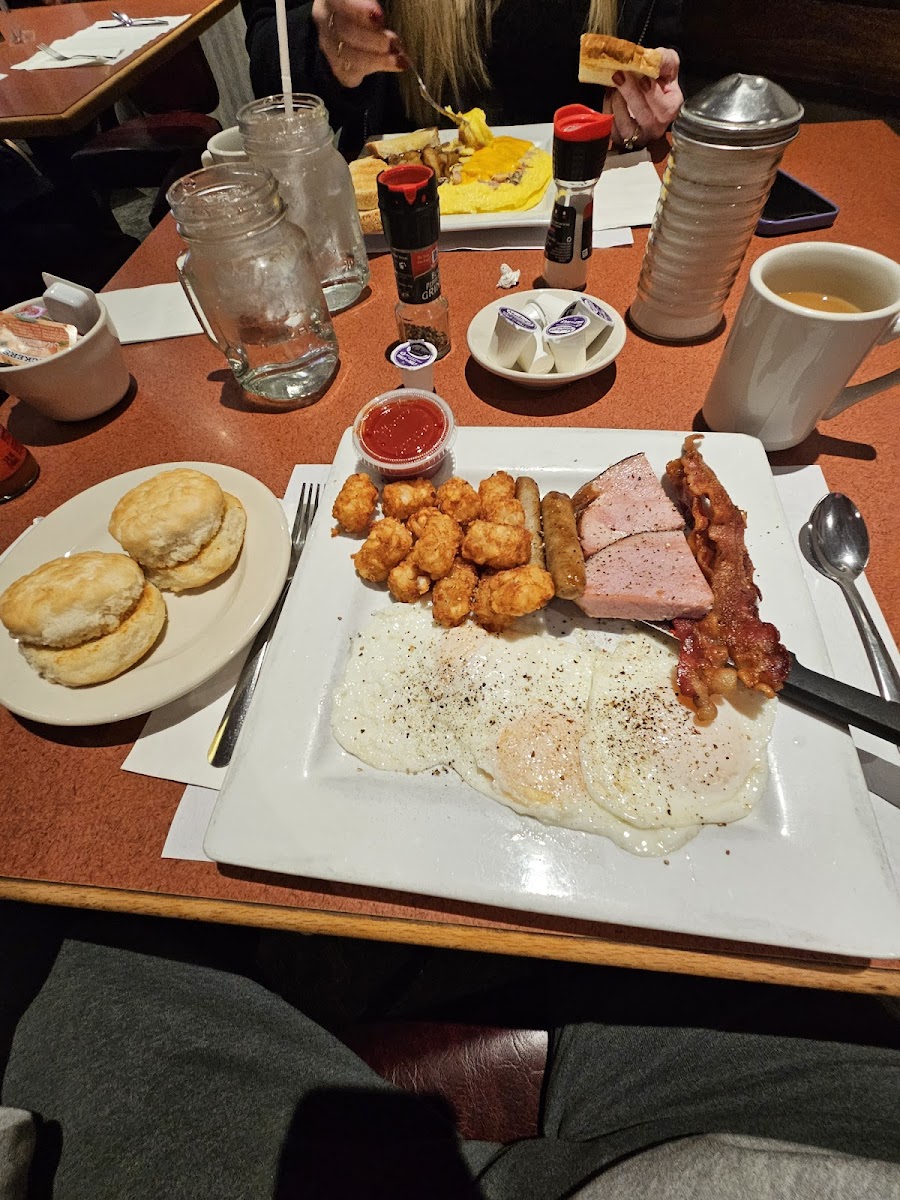 Joe’s Rusty Nail knows how to do breakfast right! We stopped by last Saturday, and the food was fantastic, but the real star of the show was Bonnie. She was on top of everything, keeping our drinks full, checking in at just the right moments, and making us feel truly welcome. Service like that is rare! I had a little bit of everything breakfast wise, and it was all phenomenal, hearty portions, great prices, and full of flavor. Plus, we even got to sit in Mr. McFeely’s legendary seat! I do have to go back and try the Reuben because I saw a number of people eating it and it looked really good. Some diners are slipping, but not Joe’s Rusty Nail! If you want great food and even better service, go see Bonnie, you won’t regret it!
