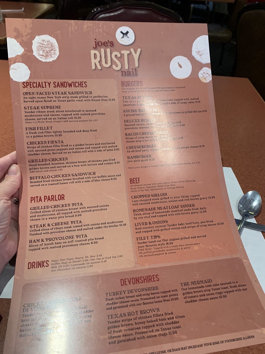 Joe's Rusty Nail Restaurant Menu