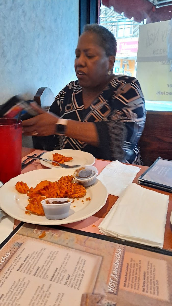 The selection features a variety of homemade favorites like French Toast and the Pittsburgh Omelette for mornings, while sandwiches such as the Bacon Cheeseburger, Turkey Melt, and Reuben provide satisfying choices for midday meals. Soups like French Onion and side options like Zucchini Fries or Sweet Potato Fries complement these dishes, enriching the laid-back, family-friendly atmosphere.